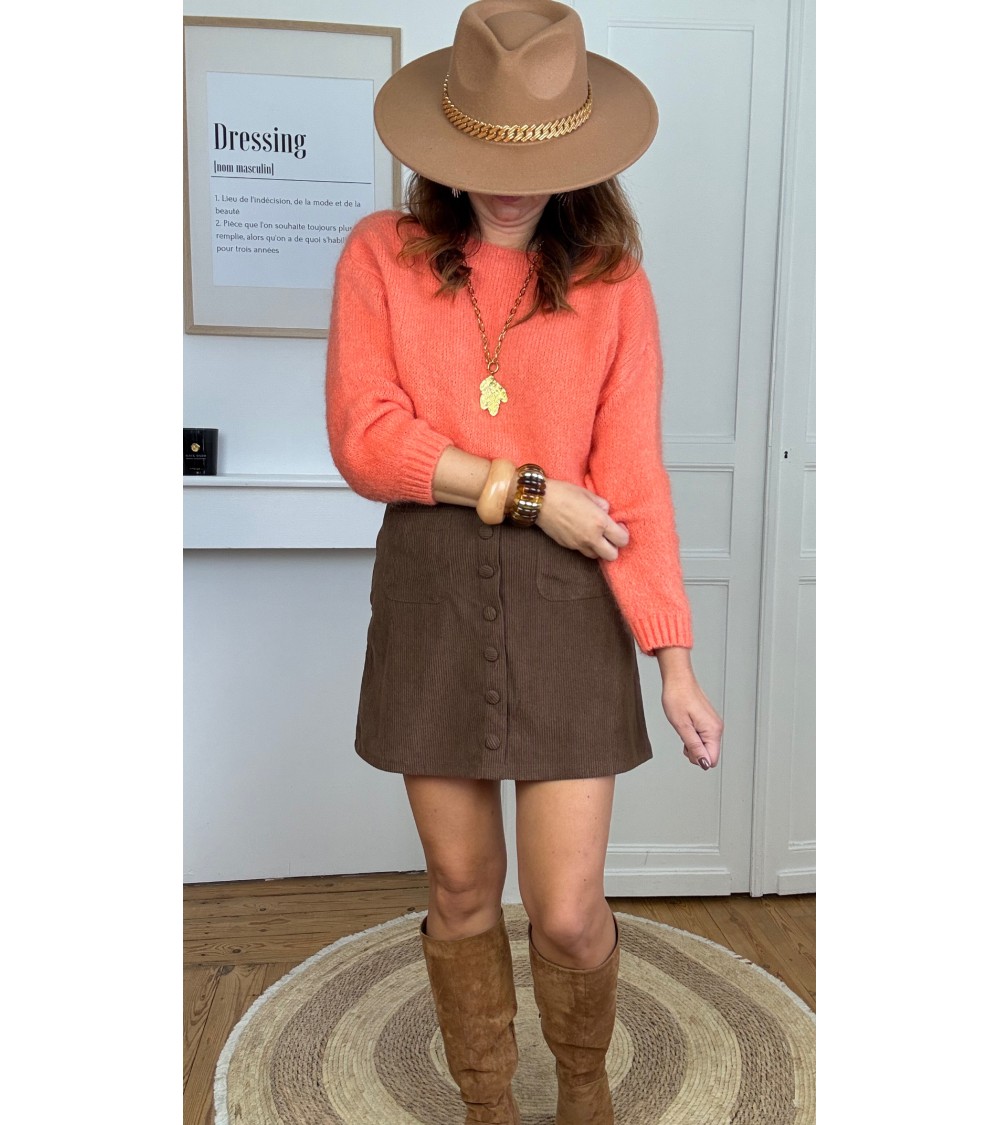 Agathe: jupe en velours chocolat