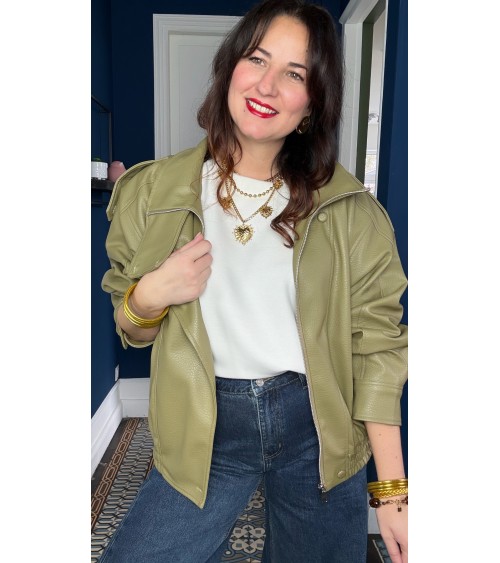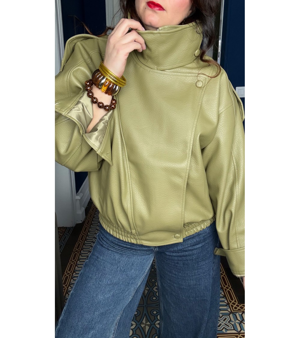 Cécilia: veste simili vert olive