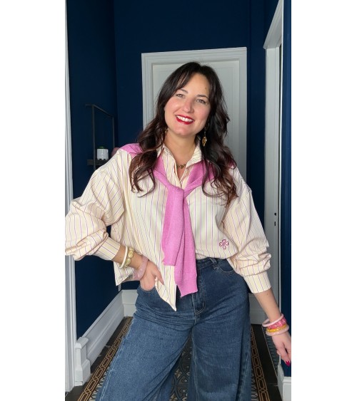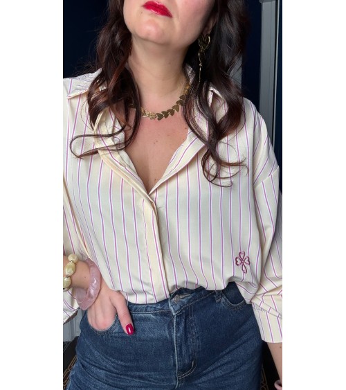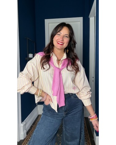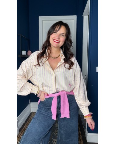 Chemise jaune à rayures roses