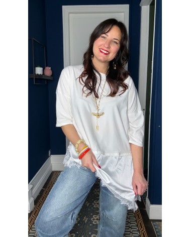 Fillipo: tee-shirt blanc dentelle