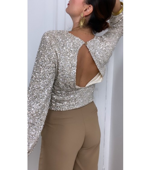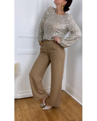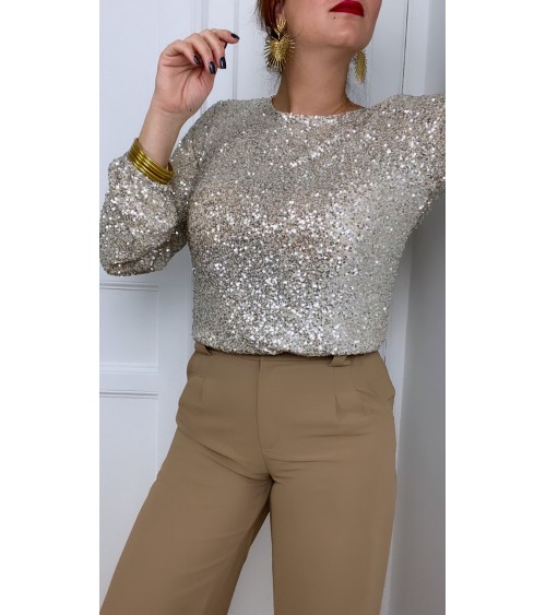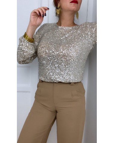 Blouse beige à sequins